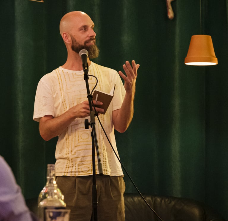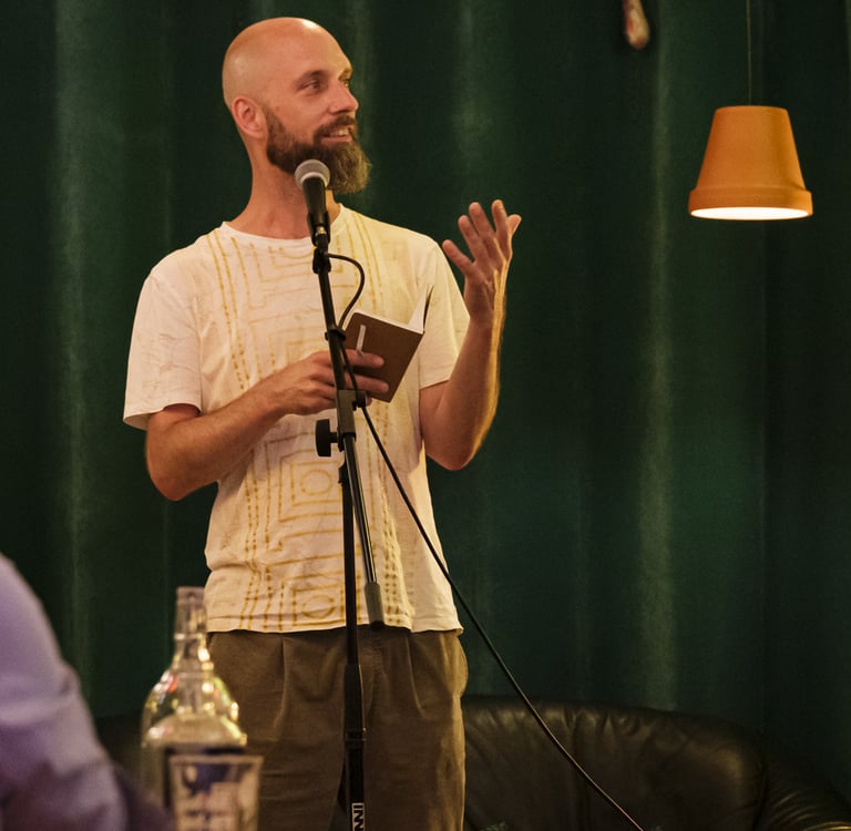 WOUT WAANDERS (1989) – Schrijft gedichten en verhalen; was hoofdredacteur van Op Ruwe Planken, huisdichter van 3FM en stadsdichter van Nijmegen. Zijn debuutbundel Parkplan won de C. Buddingh’-prijs en werd genomineerd voor de Herman de Coninckprijs. Waanders maakt deel uit van De Literaire Boyband, een boyband die literatuur maakt om doorheen te gillen. Begin 2025 verscheen zijn nieuwste bundel We zijn nog lang niet halverwege.