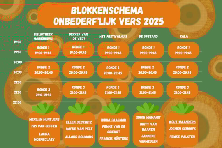 Dit was het dan! Onbederf'lijk Vers 2025 is definitief onderdeel van de geschiedenis! Vond je dit nou vet? Houd dan deze website en onze socials in de gaten voor informatie over editie 2026! Heb je een mening die je wil delen, als bezoeker, geïntereseerde of andere belanghebbende? Dan horen we graag wat je denkt in onze korte enquête!